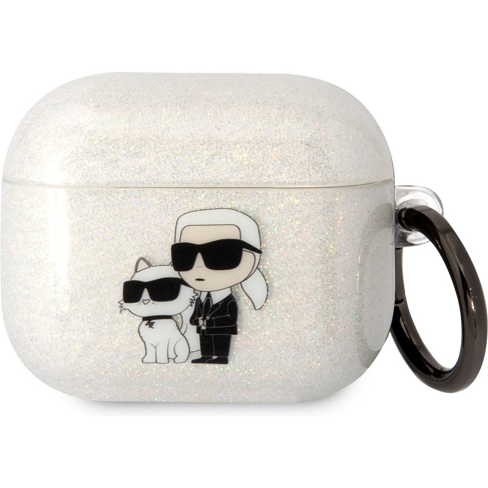 Karl Lagerfeld 3D Logo NFT Karl and Choupette TPU Glitter pouzdro Airpods 3 bílé