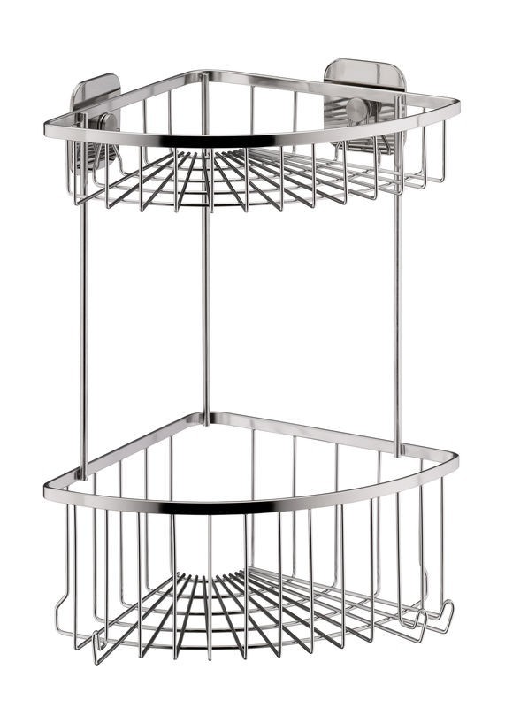 Elegantní, vysoce kvalitní a praktické! Jednoduchá a čistá montáž bez vrtání: velká rohová police Arona z nerezové oceli se jednoduše připevní na stěnu pomocí lepicích podložek. Bezešvě krásně dokončená police se 2 úložnými košíky, kterou lze použít na šampon, mýdlo a další koupelnové potřeby, je...