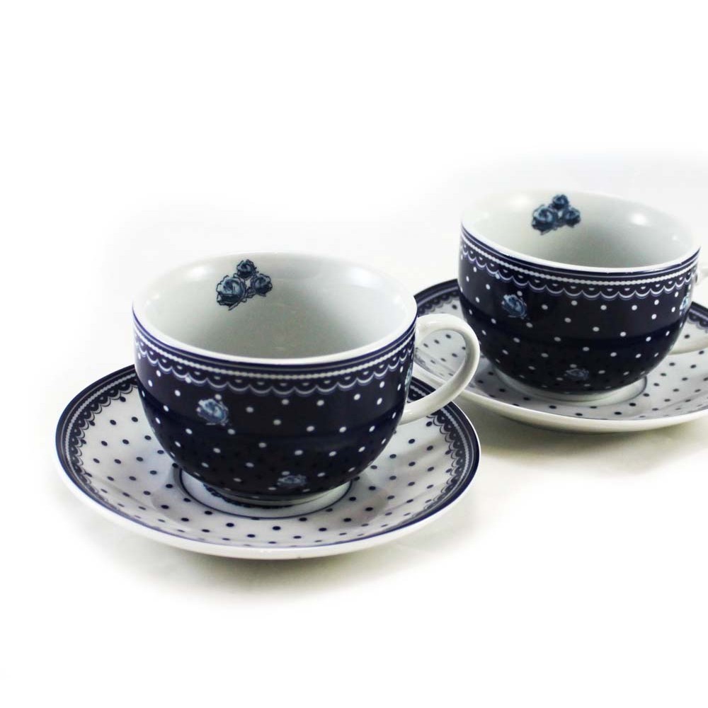 Šapo porc. 0,25 l, sada 4 ks ELEGANT MODRÁ bílý puntík