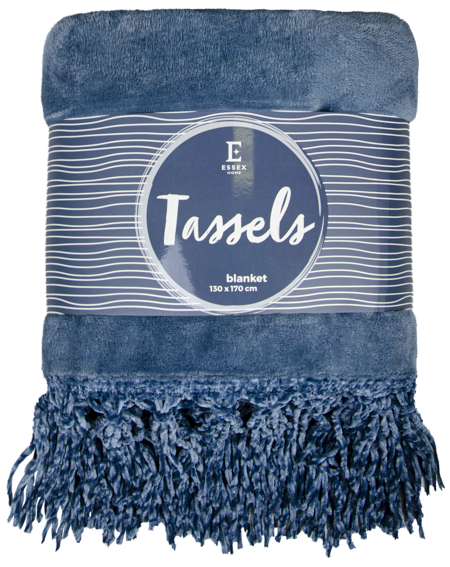 Mikrovláknový pléd - deka TASSELS modrá 130x170 cm Essex