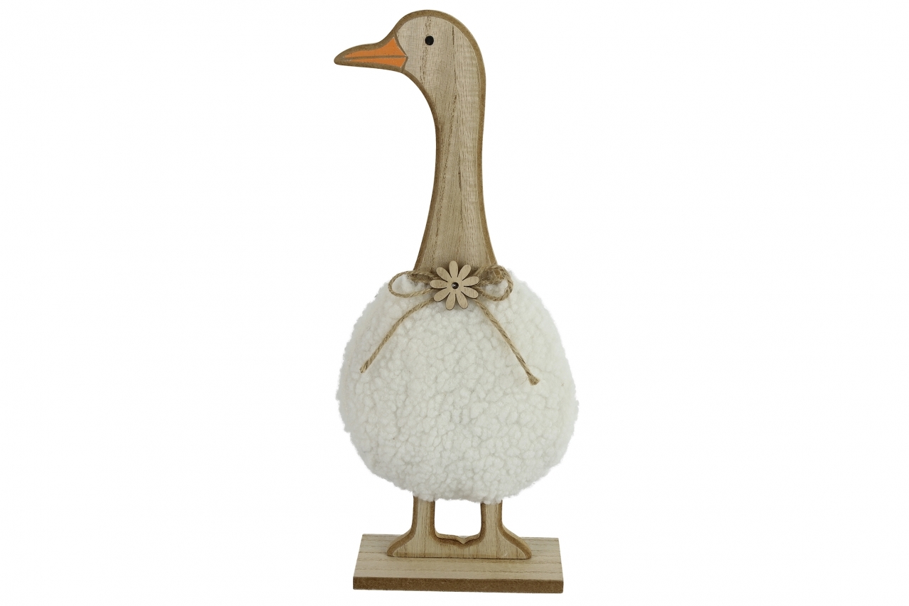Dřevěná husička na stojánku s kožíškem.Materiál: MDF deskaRozměry:výška 35 cmšířka 14 cmhloubka 6 cm przeczytaj całość