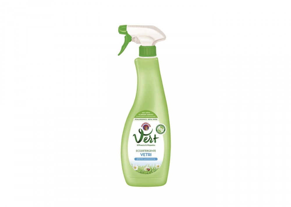 Ekologiczny preparat do okien i błyszczących powierzchni Canteclair Vert Ecodetergente Vetri zawiera składniki na bazie substancji powierzchniowo czynnych pochodzenia w 100% roślinnego. Zapewnia olśniewający połysk wszystkim błyszczącym powierzchniom, takim jak okna, lustra, lakowane meble, błyszczące urządzenia AGD i płytki. Efekt Antigoccia pozostawia powierzchnie błyszczące, bez śladów po kroplach wody. Ekologiczny środek do mycia okien Chante Clair Vert Vetri nie jest testowany na zwierzętach, przebadany pod kątem metali ciężkich (nikiel, chrom, kobalt, ołów, rtęć). Opakowanie w 100% nadaje się do recyklingu. Ekologiczny środek do mycia okien i błyszczących powierzchni Chante Clair Vert Ecodetergente Vetri * olśniewający połysk bez smug* odpycha krople wody* przeznaczony do okien, luster, lakowanych mebli i płytek* hipoalergiczny skład* substancje powierzchniowo czynne pochodzenia w 100% roślinnego* nie testowany na zwierzętach* przebadany pod kątem metali ciężkich (nikiel, chrom, ołów, kobalt i rtęć)* dermatologicznie testowany
