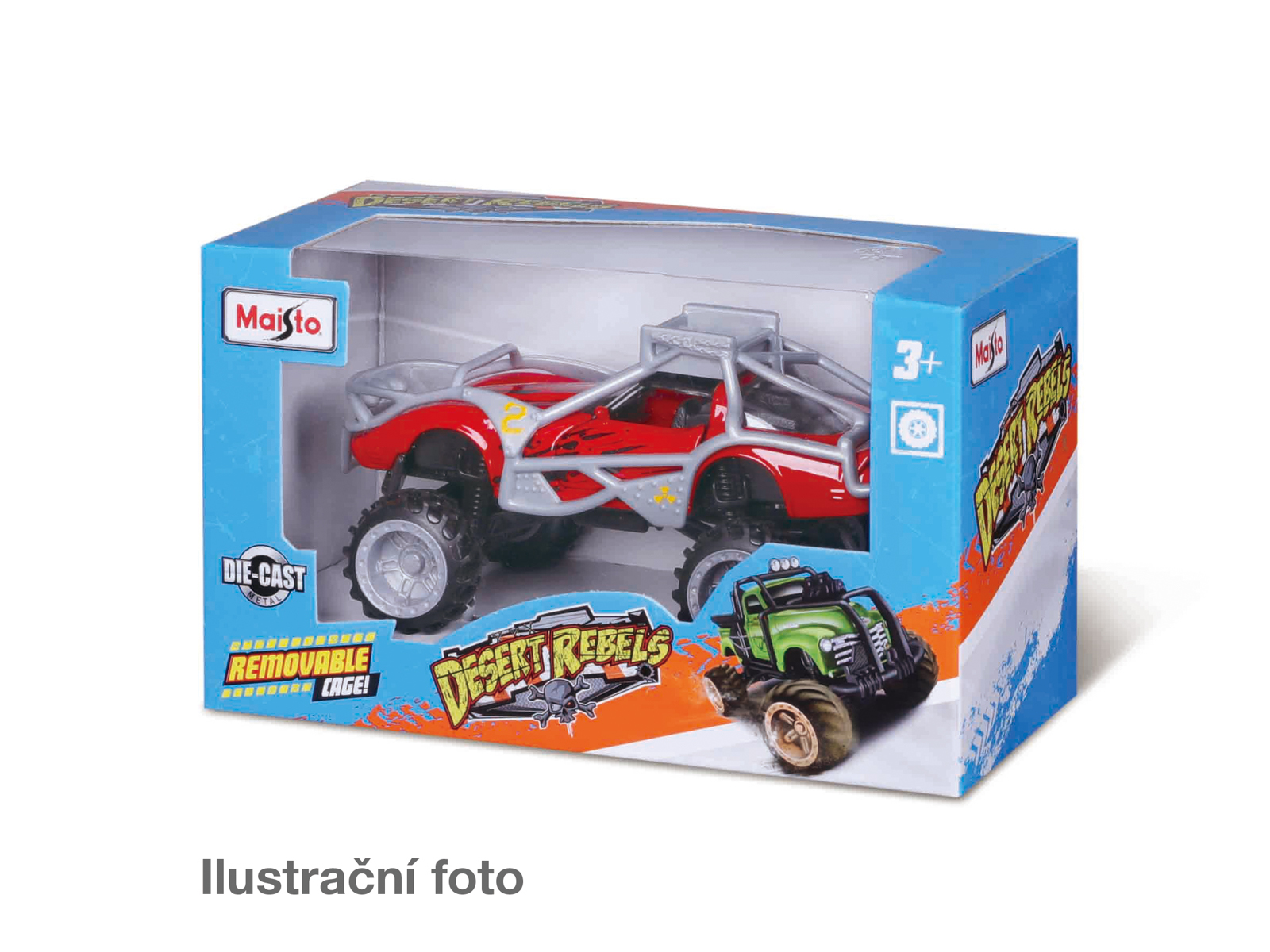 Desert Rebels. Kovové modely aut v provedení off-road, odnimatelný plastový rám, otevíraní dveří. Plastové doplňky. K dispozici 12 variant: Ford Mustang Gt 2015 Blue, Ford Mustang Gt 2015 Red, Dodge Challenger 2006 Green, Dodge Challenger 2006 Yell, 1953 Chevrolet 3100 Green, 1953 Chevrolet 3100...