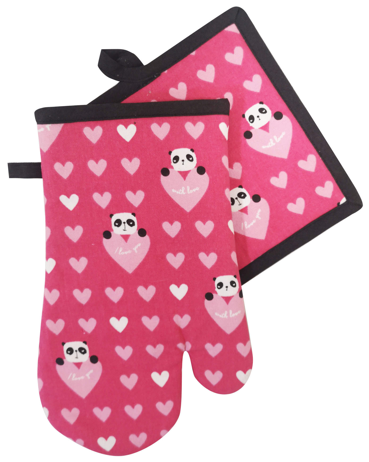 Kuchyňský SET rukavice/chňapka DARLING 18x30 cm/20X20 cm panda ESSEX, 100% bavlna