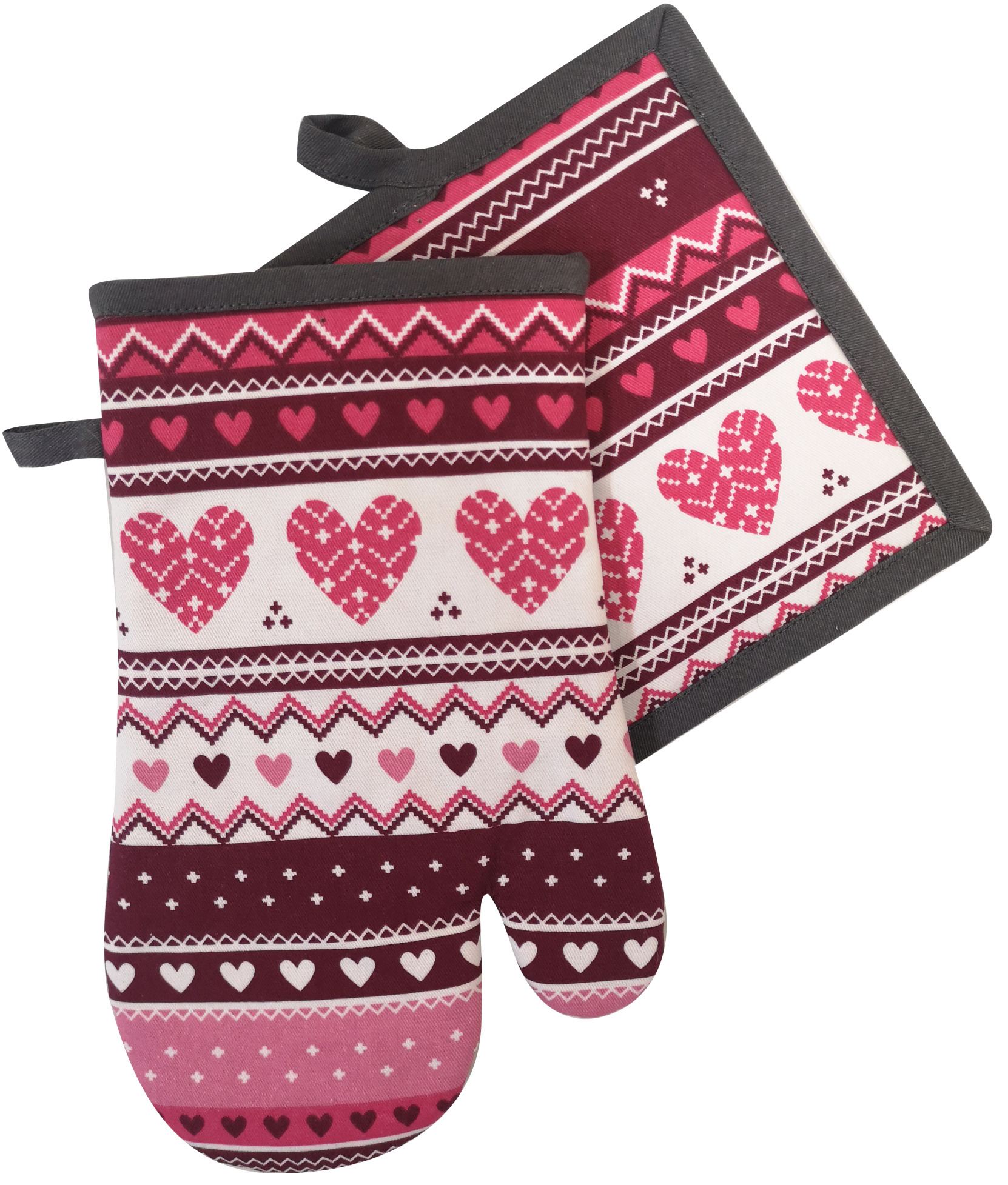 Kuchyňský SET rukavice/chňapka DARLING 18x30 cm/20X20 cm srdíčka ESSEX, 100% bavlna