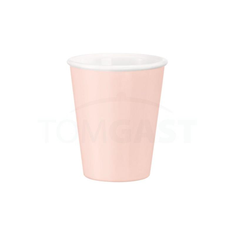 Aromateca šálek v pastelově růžové barvě oživí váš jídelní stůl. Díky svému materiálu jsou šálky odolné vůči odštípnutí a poškrábání a poskytují naprostou hygienu. Kolekce je ideální pro použití ve školských či zdravotnických zařízeních.