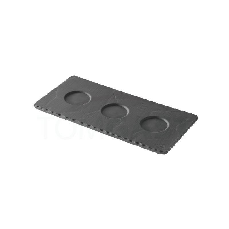Basalt tác se třemi prolisy se svým originálním designem je skvělou volbou na podávání kávy, čaje, čokoládové pěny, omáček nebo dochucovadel. Do prolisů se perfektně hodí Froissés hrnky (8 cl) a misky Impuls z kolekce Miniatures (4 cl).