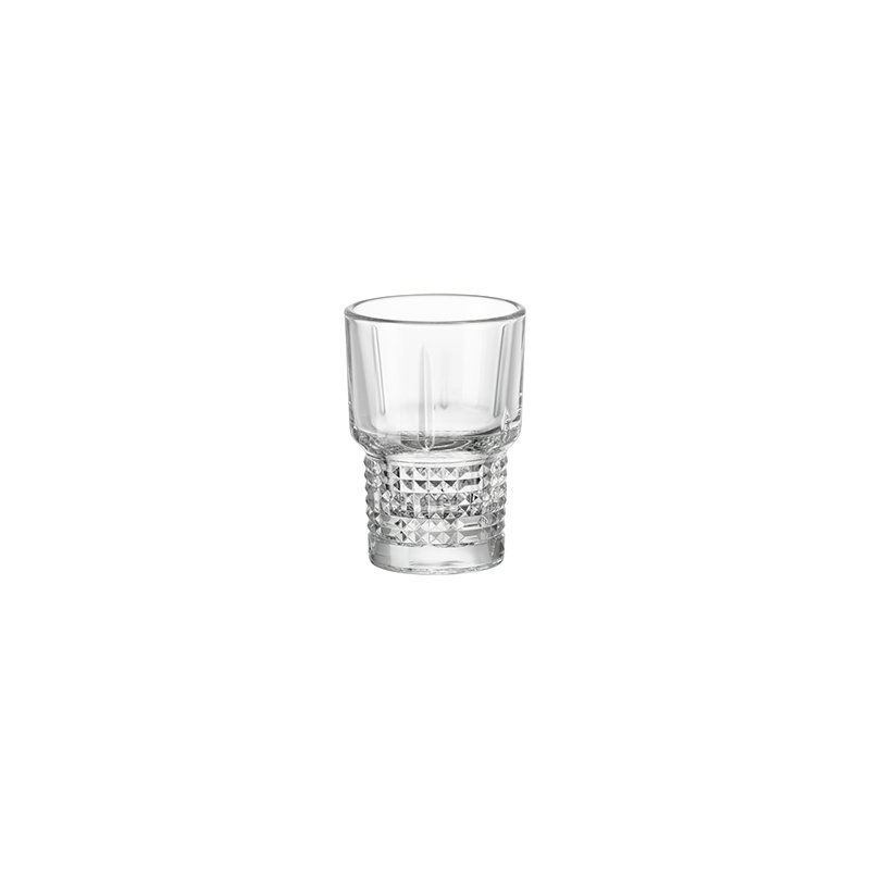 Kolekce Bartender zahrnuje širokou škálu sklenic s Vintage designem. Spodní část sklenice je zdobena geometrickou výzdobou, která připomíná počátek dvacátého století a dodává sklenici nádech nostalgie. Malá velikost odlivky jí neubírá na bohatosti dekorace a díky objemu 7 cl je ideální pro podávání alkoholu. Navíc se hodí i jako sklenička na vodu při podávání kávy.