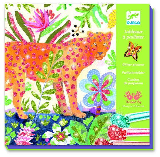 Krásná zvířata z jungle k dotvoření pomocí třpytivých písků. Sada obsahuje 4 lepivé podložky s obrázky, 6 tub se třyptkami, 1 pomůcka na odstranění papíru z lepivé části obrázku a návod na přesný postup. Vhodné pro děti od 8let. Rozměr balení: 23,5 x 23 x 4 cm przeczytaj całość