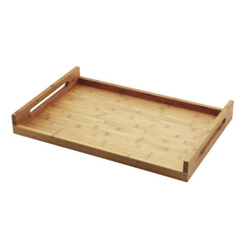 Obdélníkový tác z bukového dřeva je ideální pro servírování vašich pokrmů u jídelního stolu, v bufetu nebo pro pokojovou službu. Praktické rukojeti a hrana usnadňují přenášení nádobí. Podnos je odolný vůči teplu a splňuje nejvyšší standardy kvality.