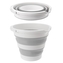 Wiadro z wylewką i uchwytem w nietypowym wykonaniu - składane - nie zajmuje prawie żadnego miejsca, gdy go nie potrzebujesz. Łatwo i szybko je złożysz, złożone możesz powiesić. Mimo to jest w pełni funkcjonalne. Możesz je nawet częściowo rozłożyć i używać jako pojemniki o różnej wielkości. Dzięki sztywnym elementom w korpusie dobrze trzyma kształt. Świetne do małych mieszkań, na chatę, do kamperów... Materiał: plastik PP + TPE. Wymiary: pojemność 12 l, śr. 32 cm, wys. 6,5/27 cm.
