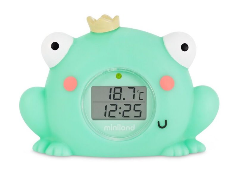 Digitální teploměr v podobě žabičky slouží jako pokojový teploměr a zároveň umožňuje měření teploty ve vaně. Teploměr je navržen tak, aby sloužil i jako hračka do koupele. Jeho součástí jsou hodiny a stopky, které vám umožní měřit dobu koupele. Teploměr za vás hlídá i optimální teplotu ve vaně,...