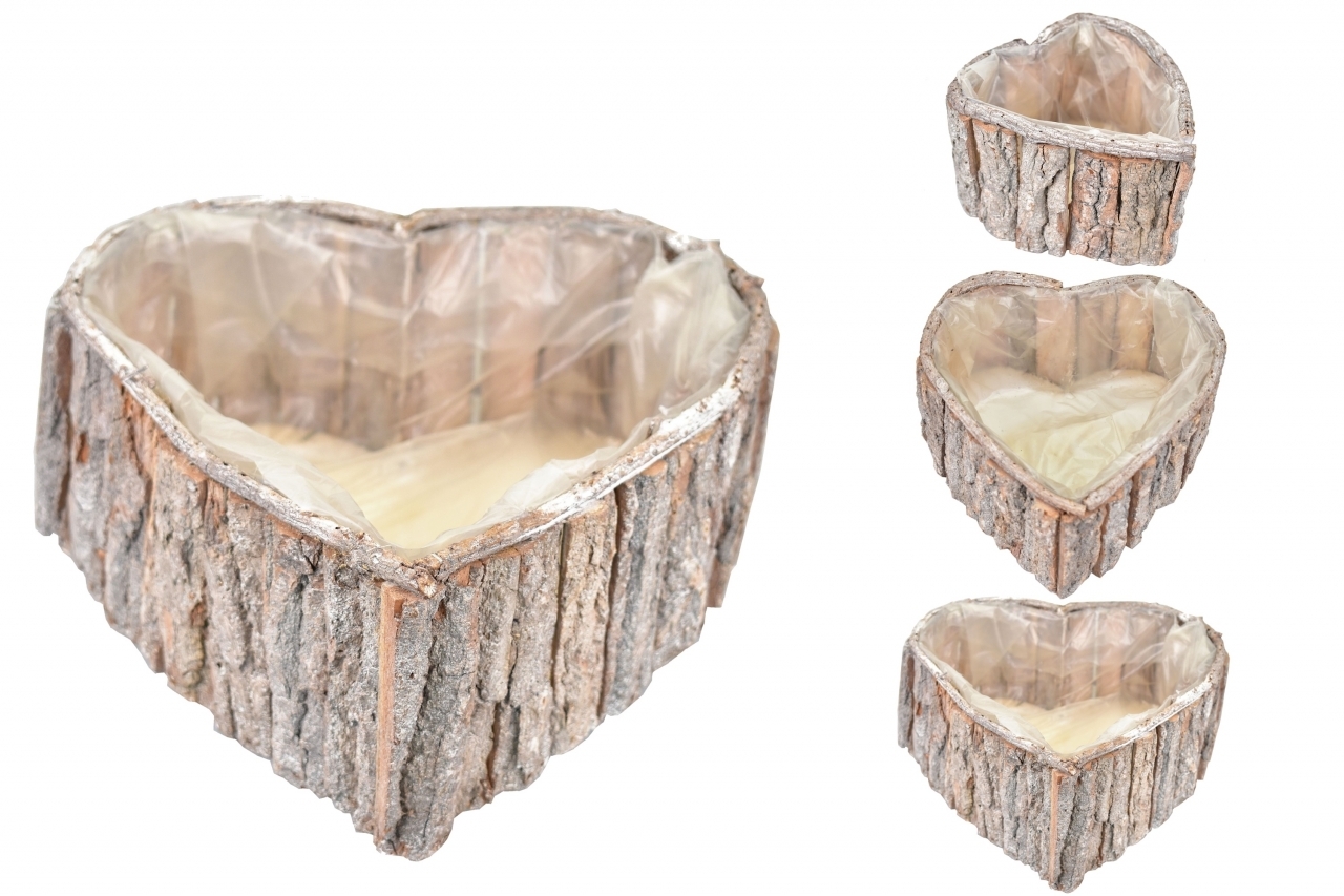 Srdce z kůry sada 3 ks