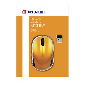 Verbatim Myš Go Nano 49045, 1600DPI, 2.4 [GHz], optická, 3tl., bezdrátová, oranžová, 2 ks AA