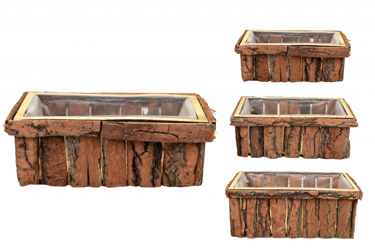 Sada 3 ks přírodních květináčů z kůry stromu. Součástí květináčů je igelitová výplň.Materiál: dřevoRozměry:malývýška 8 cmšířka 24 cmhloubka 14 cmstřednívýška 10 cmšířka 28 cmhloubka 17 cmvelkývýška 12 cmšířka 32 cmhloubka 20 cm przeczytaj całość