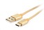 Bavlnený opletený kábel USB typu C s kovovými konektormi, 1.8 m, zlatá farba, blister