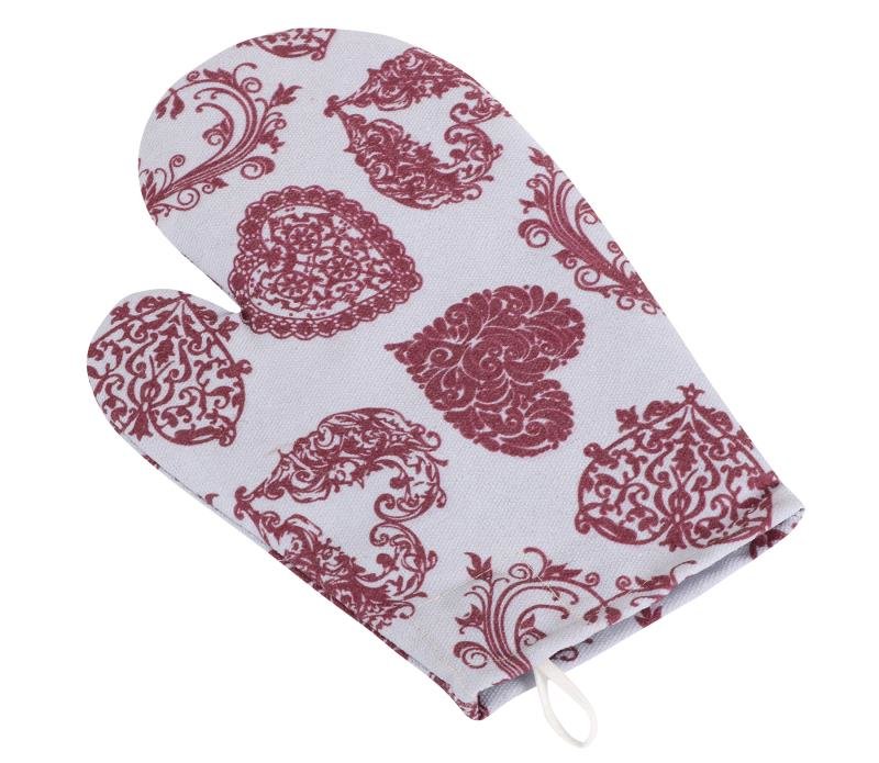 Kuchyňská chňapka - krajkové srdce - vínová, šedá - chňapka 28x18 cm