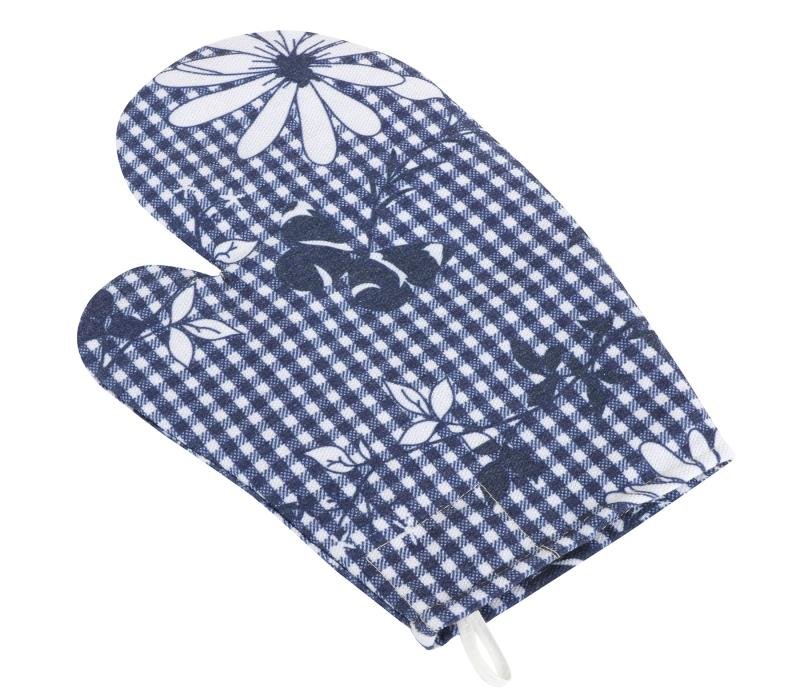 Kuchyňská chňapka - modrá kostička s květem - chňapka 28x18 cm