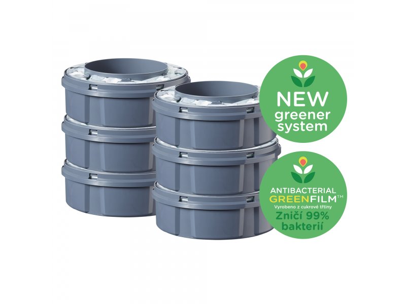 Nieprzepuszczalna folia GREENFILM™ z ochroną antybakteryjną i przyjemnym zapachem cytrynowym zapobiega nieprzyjemnym zapachom i jednocześnie eliminuje 99% bakterii. System odkładania zużytych pieluszek Sangenic jest co najmniej 100× skuteczniejszy w zapobieganiu zapachom niż torebki na pieluszki.