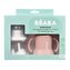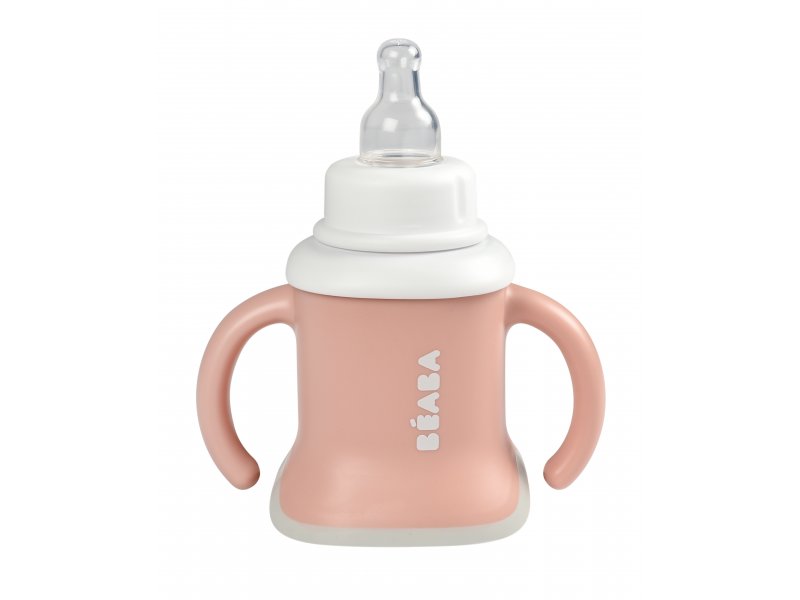 Kubek treningowy pomoże Twojemu dziecku, przyzwyczajonemu do picia z butelki ze smoczkiem, nauczyć się pić z kubka z ustnikiem, a później z klasycznego kubka. Kubek oferuje wszystkie trzy warianty - smoczek, ustnik oraz użycie jako klasyczny kubek. Odłączane uchwyty ułatwiają dziecku trzymanie. Zatrzaskowy ustnik zapobiega wylaniu zawartości podczas przenoszenia kubka.