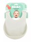 Bryndák z jemného, pružného silikonu je vybaven širokou kapsou pro zachycení drobečků i kapek. Dokonale ochrání oblečení dítěte již od prvních pokusů o samostatné stolování. Zapínání za krkem umožňuje snadno upravit velikost kolem krku. Bryndák je omyvatelný a je možné jej mýt i v myčce.Rozměry:... przeczytaj całość