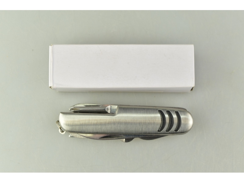 Kieszonkowy wielofunkcyjny nóż składany. Rączka, ostrza i pozostałe narzędzia ze stali nierdzewnej. EAN 5999110299396 przeczytaj całość
