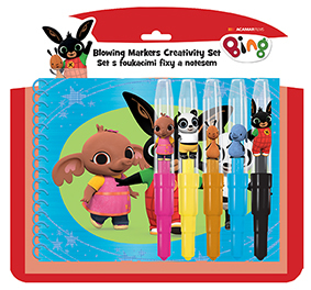 Zestaw zawiera 5 kolorowych pisaków dmuchanych z nadrukiem, zeszyt z obrazkami do pokolorowania oraz plastikową szablonę. przeczytaj całość