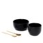 Černé keramické misky se zlatými lžičkami. Nádobí nejsou jen talíře, podnosy a mísy, ale také menší kousky, které umožňují servírovat menší občerstvení. Keramické misky DOWAN jsou pro tuto roli ideální a budou skvělým doplňkem prostřeného stolu. Misky jsou vyrobeny v černé barvě, která skvěle...