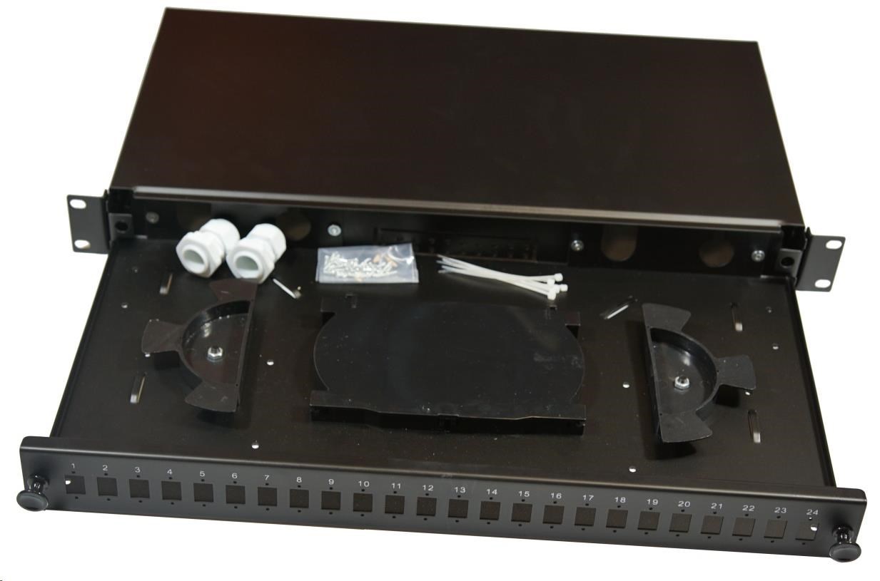 Optická vana výsuvná 1U, 24x SC simplex (24x LC duplex, 24x E2000) s kazetou OPTRONIC pro 24 svárů