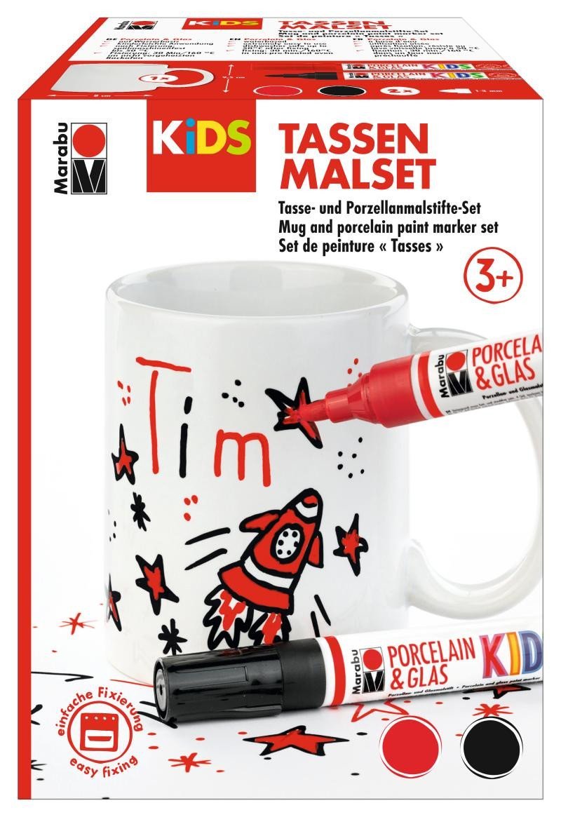 Marabu KiDS Porcelain & Glas Painter - 2x popisovač + hrnek pro kluky