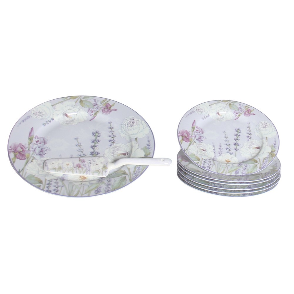 HOME ELEMENTS Dortový set: dortový talíř, 6 x talíř, dortová lžíce, Levandule