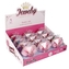 Osadzone w różowym kolorze, zamknięte w pięknym przezroczystym plastikowym pudełeczku w kształcie diamentu.