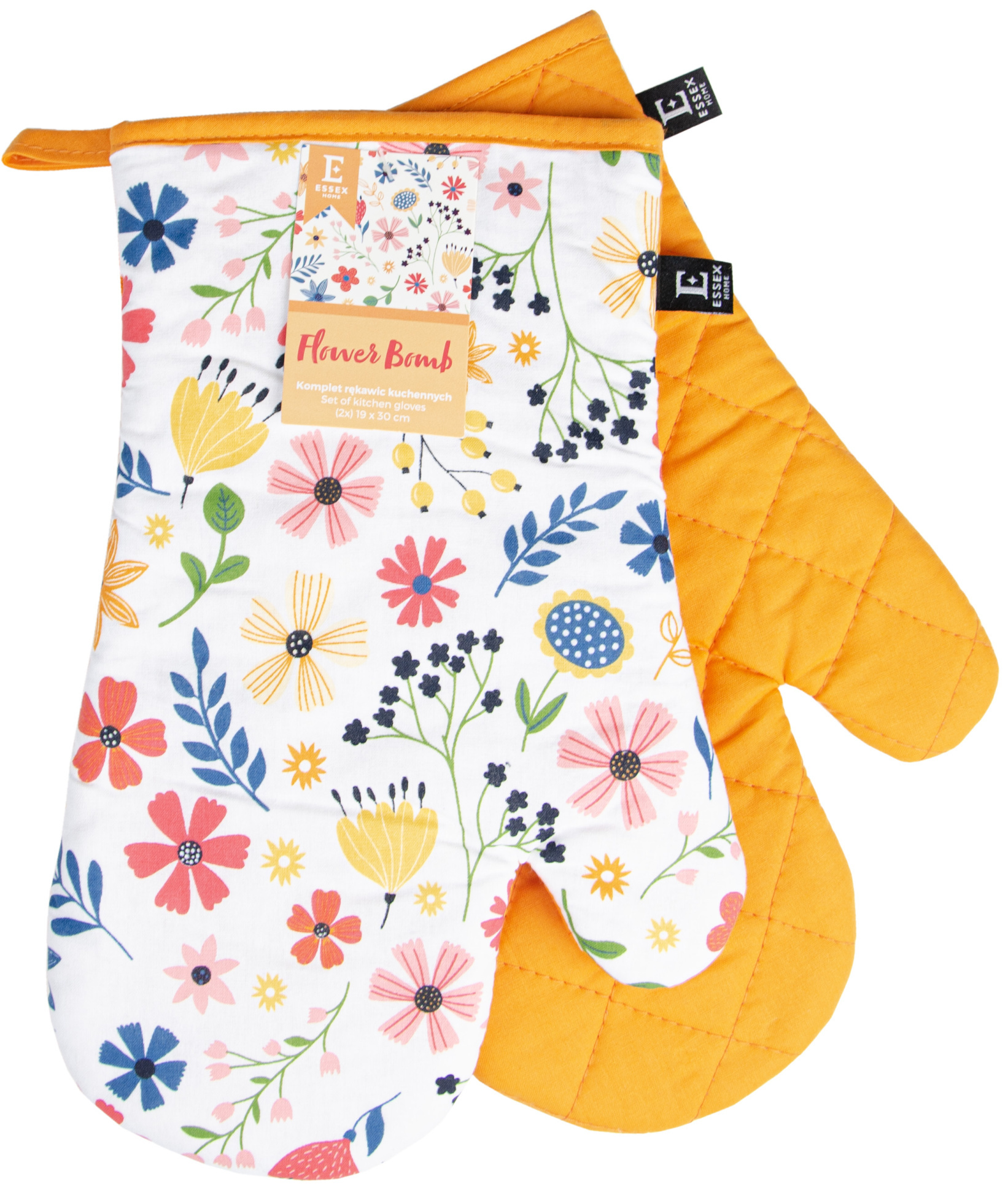 Kuchyňské bavlněné rukavice - chňapky FLOWER BOMB 100% bavlna 19x30 cm Essex