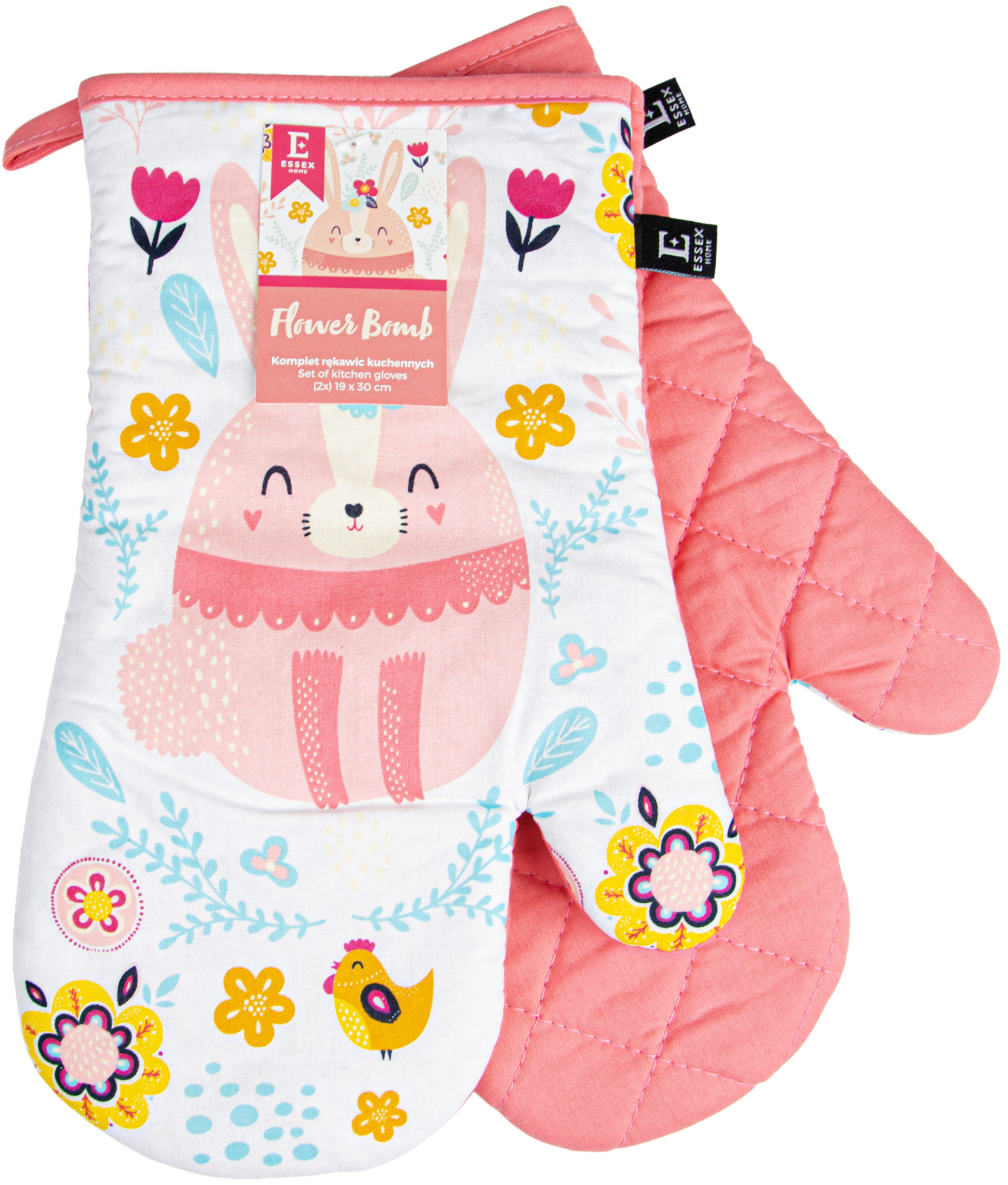 Kuchyňské bavlněné rukavice - chňapky FLOWER BOMB růžová 100% bavlna 19x30 cm Essex