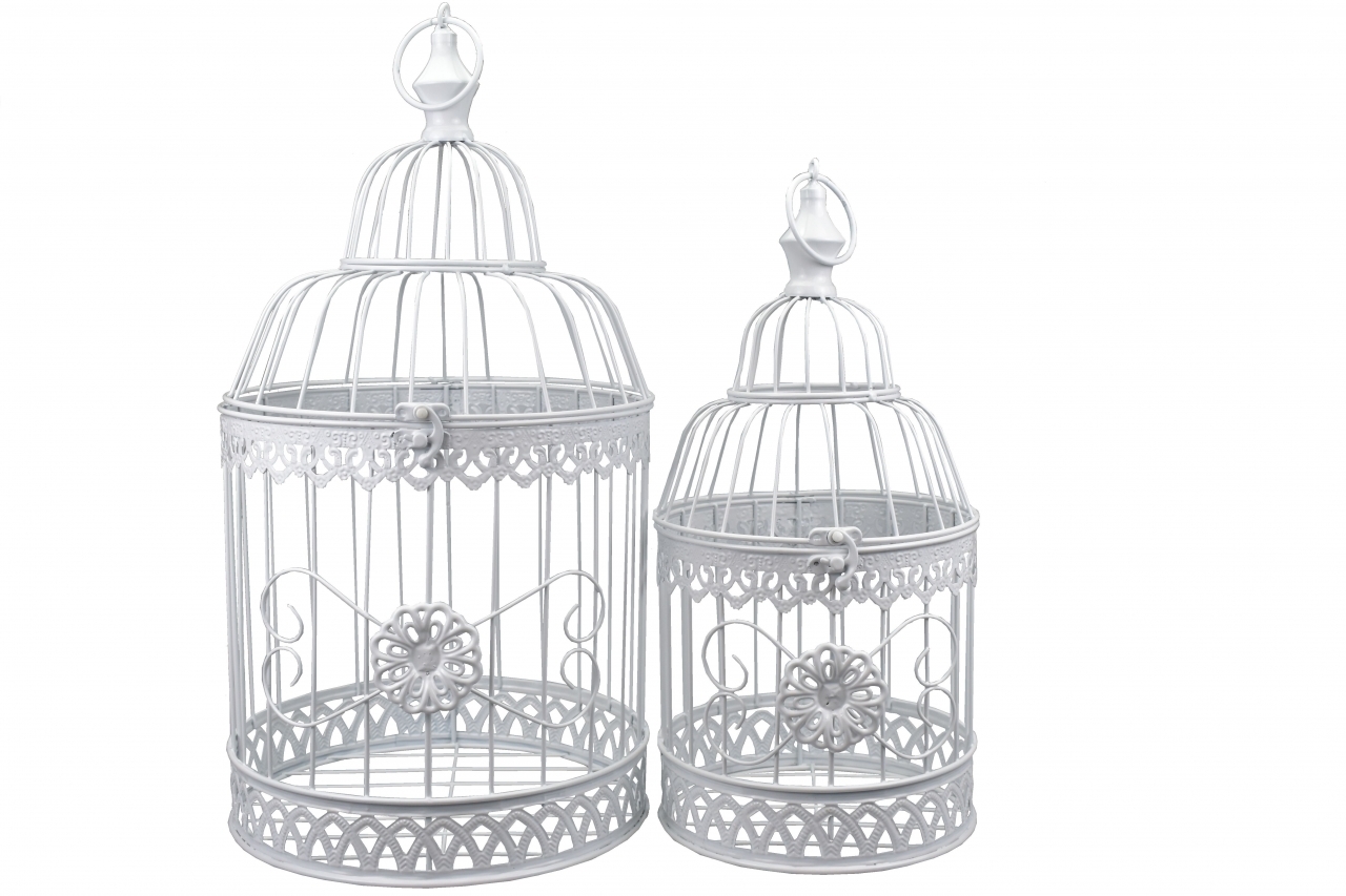 Dekorační ptačí klec bílá s květinkou s/2