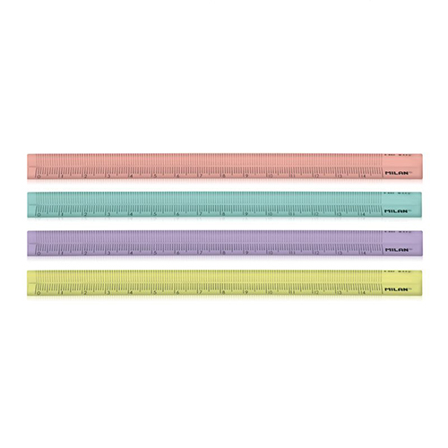 15 cm trójkątne, przezroczyste, sztywne plastikowe linijki. Przezroczyste kolory: żółty, pomarańczowy, zielony i fioletowy. Seria New Look. Zawiera 15 sztuk z każdego koloru. przeczytaj całość