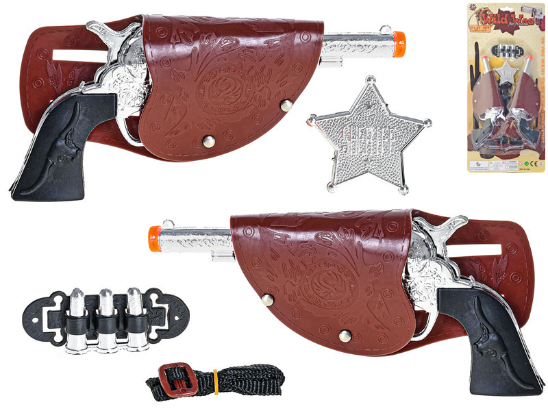 Pistole kovbojské 19,5cm s pouzdrem + odznak a náboje na kartě
