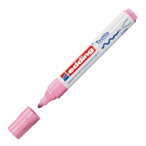 Popisovač na textílie s okrúhlym hrotom strednej hrúbky. Plnený atramentom bez zápachu na báze vody. Farby treba zafixovať žehlením na sucho. Po zafixovaní sú farby odolné voči praniu do 60°C. Šírka stopy: 2-3 mm. Farba: ružová. przeczytaj całość