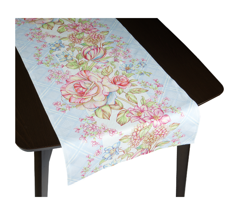 Ubrus BĚHOUN - růže - sv.modrá, růžová - 50x180 cm