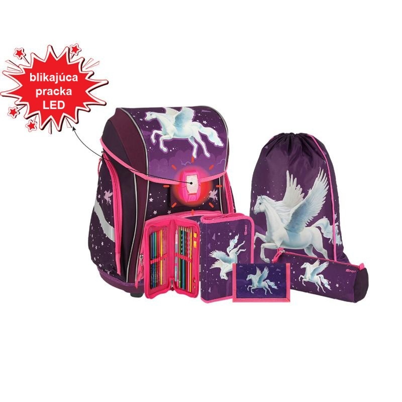 Školní batoh - 5-dílný set SMART 3D s LED osvětlením - Pegasus