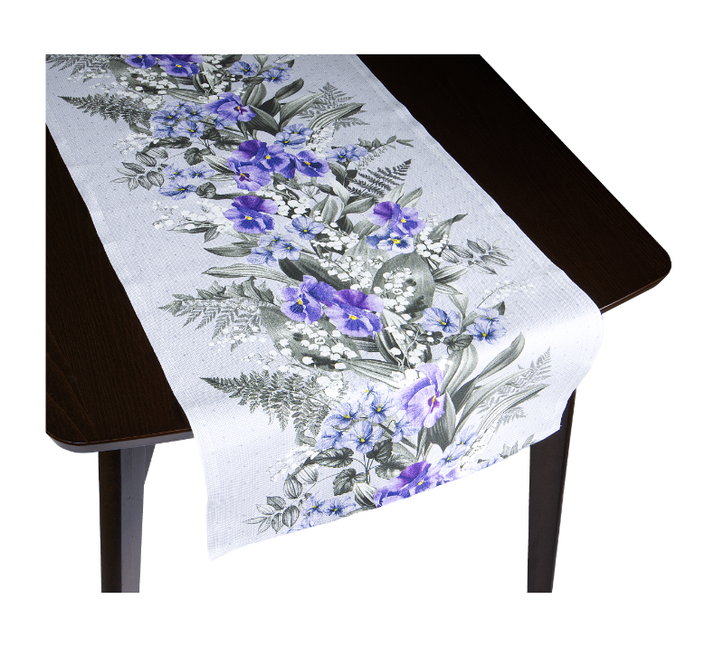 Ubrus BĚHOUN - macešky - fialová, šedá - 50x140 cm