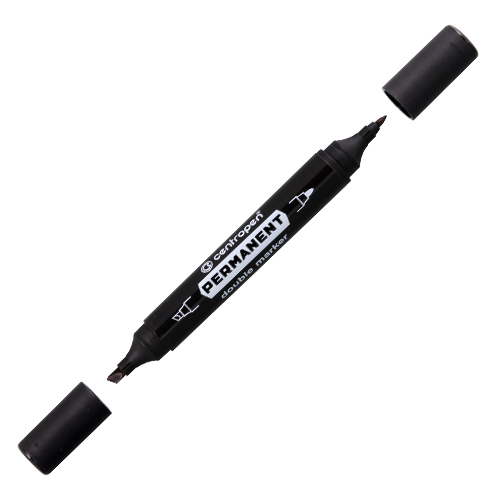 Marker permanentny Double Marker - dwustronny. Kolor: czarny. Pisze na papierze, gumie, skórze, tworzywach sztucznych, metalach. Permanentny atrament na bazie alkoholu, odporny na wodę i temperaturę do 100°C. Okrągły grot - szerokość linii 1 mm. Skośny grot - szerokość linii 1-4 mm. przeczytaj całość