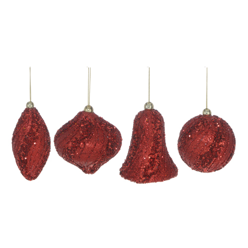 Vánoční ozdoby - PS červené gliter různé tvary 8 cm, set 2ks