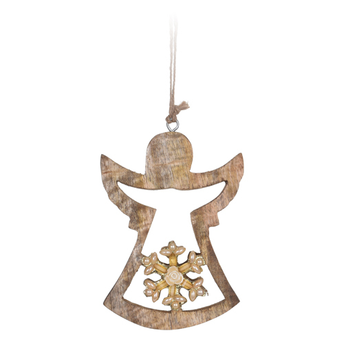 Vánoční ozdoba - dřevěná, anděl s korálky 15 cm, 1ks