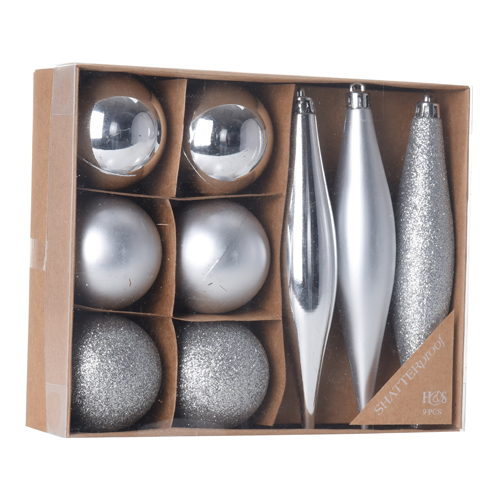 Vánoční ozdoby - PP stříbrné - různé tvary 4-14 cm, sada 9ks
