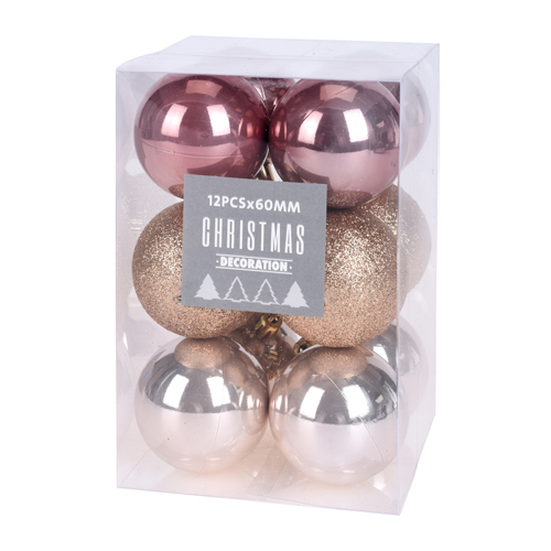 Vánoční koule - PP 60 mm / růžově zlaté, sada 12ks