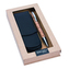 Designové guľôčkové pero s korkom na hriadeli, ušľachtilý otočný mechanizmus, veľkokapacitná náplň M, farba na písanie čierna, s koženým puzdrom - balené v kazete.