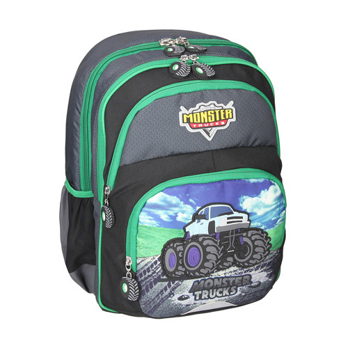 Školský batoh ergonomický, Monster Truck:• moderný dizajn s 3D potlačou, polyesterový materiál • reflexné pásy, ktoré zvyšujú viditeľnosť a bezpečnosť v noci • anatomicky tvarovaný chrbát pre jednoduchú cirkuláciu vzduchu • dve bočné vrecká, predné vrecko s tepelnou izoláciou • predný a zadný...
