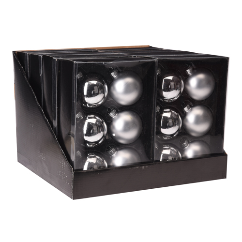 Vánoční koule - skleněné 65 mm / stříbrné, sada 6ks