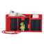 Detská peňaženka so šnúrkou a zapínaním na suchý zips. Vnútro obsahuje: PVC okienko, krúžok na kľúče, 1 vnútornú priehradku na zips a zasúvaciu priehradku, 1 vonkajšie PVC okienko so zapínaním na zips. Rozmery: 12,5 x 8,5 cm (zložené) a pútko 40 cm. Materiál: 100 % polyester. przeczytaj całość